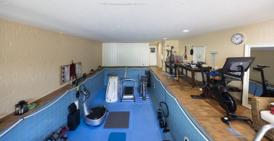 Im Untergeschoss eröffnet sich weiteres Potenzial: Ein über 30 m² großer Raum lässt sich flexibel als Fitness-, Hobby-, Gäste- oder Arbeitszimmer nutzen – aktuell dient er als Schlafzimmer. Neben diversen Abstellräumen und dem Technikbereich wartet hier ein besonderer Bonus auf Sie: Der ehemalige Indoor-Pool mit angrenzender Sauna ist zwar derzeit stillgelegt, bietet aber die Chance, einen exklusiven Wellnessbereich nach Ihren Vorstellungen zu reaktivieren.