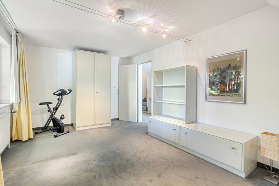 Im Dachgeschoss erwarten Sie drei Schlafzimmer, von denen eines auch hervorragend als Arbeitszimmer genutzt werden kann. Alle Räume sind mit Teppichböden ausgestattet und bestechen durch ihre Helligkeit dank großzügiger Fensterflächen. Das stilvolle Hauptbad ist zeitlos weiß gefliest und bietet mit Dusche, Badewanne und zwei Waschbecken hohen Komfort auf dieser Wohnebene.