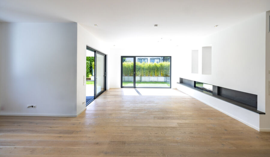 - Gaskamin mit ca. 1,60 m Glasfront, zweiseitig einsehbar, als stilvoller Raumteiler zwischen Wohn- und Essbereich
